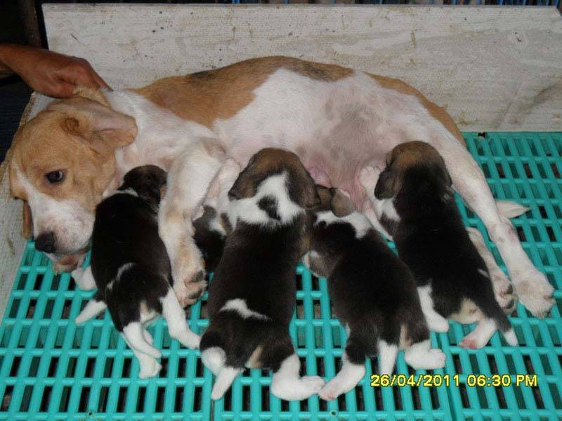 มีลูกสุนัขสายพันธุ์บีเกิ้ล ตัวเมีย 3 ตัว ตัวในรูป พันธุ์แท้ครับ ลูกสุนัขเกิดวันที่ 9 เมษายน 2554 สีสวย สีเข้ม ขนสามสี มีหน้ากากแซกหน้าทุกตัว มีสร้อยคอ รูปถ่ายปัจจุบันครับ เปิดให้จองไว้ก่อนครับ ลูกสุนัขแข็งแรงดีมากครับอ้วนจ้ำม่ำ ขายราคาตัวละ 5,500 บาท รับลูกสุนัขได้ตอนอายุครบ 45 วันพร้อมฉีดวัคซีนรวม ให้ 1 เข็ม สนใจโทรสอบถามรายละเอียดได้ครับที่เบอร์ 089-9535127...สมพันธ์ (ต่างจังหวัดบริการส่งทางเครื่องบินครับ ทางคาร์โก้สายการบินไทย ค่าขนส่ง + กรงใหม่ 1 ใบ ประมาณ 600 บาท ผู้ซื้อต้องออกเองนะครับ) ดูรูปเพิ่มเติมที่ Link Web