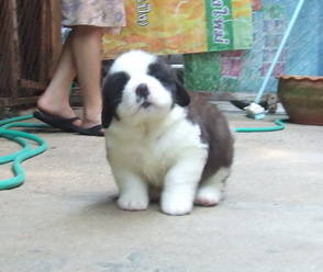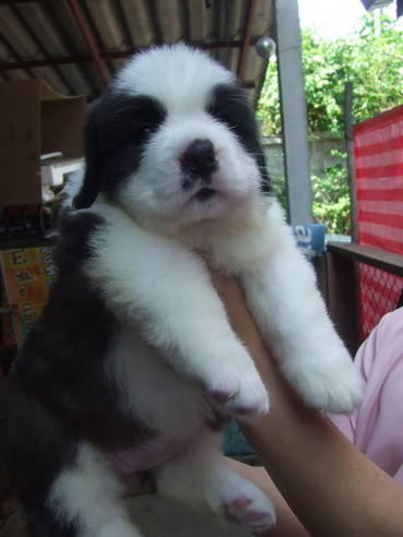 ลูกเซนต์เบอร์นาร์ดเพศเมีย อายุ 6 สัปดาห์ ทำวัคซีนรวมแล้ว 1 เข็ม ถ่ายพยาธิแล้ว ตัดนิ้วติ่งทั้ง 4 เท้าโดยสัตวแพทย์ สุขภาพแข็งแรง สีเสื้อเต็ม มีมาลัยรอบคอ