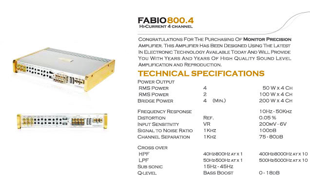จำหน่าย แอมป์ MONITOR PRECISION FRABRIO 800.4 ราคาส่ง 7900 บาท ของใหม่แกะกล่อง รับประกัน