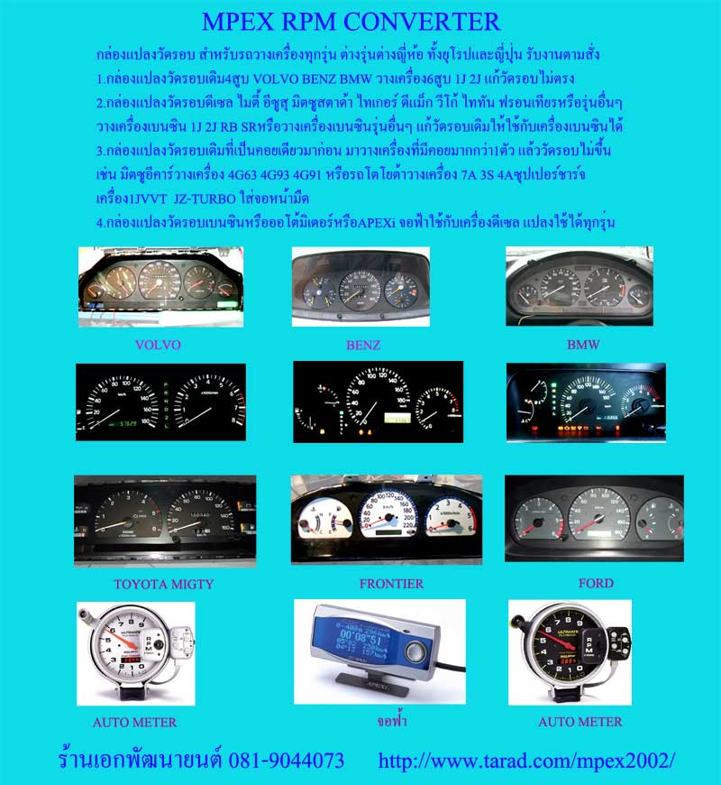 กล่องแปลงวัดรอบ กล่องแปลงไมล์ ช่วงนี้น้ำท่วมแต่จัดส่งสินค้าได้ครับ ดูผลงานที่นี่ครับ http://www.pantipmarket.com/mall/mpex2002/?node=products สมาชิกมากว่า8ปี ร้านอยู่ถนนรัตนาธิเบศ ม.ราชพฤกษ์วิลล่า ที่นี่เท่านั้นจูนไมล์หรือวัดรอบด้วย computer ตรวจสอบความเที่ยงตรงกับ GPS เที่ยงตรงแบบสั่งได้ จำหน่ายและบริการติดตั้งกล่องแปลงวัดรอบ และไมล์ความเร็วไฟฟ้าสำหรับรถวางเครื่องทุกรุ่น หน้าปัด ต่างรุ่นต่างยี่ห้อ ทั้งรถดีเซลวางเครื่องเบนซิน หรือรถเบนซินวางเครื่องดีเซล เช่นวาง1J-2J-UZ-SR-KZ-2KD-3S-4A เครื่องVVTI ลงในรถกระบะ หรือโทรสั่งทำตามรุ่นรถได้ แก้ปัญหาวัดรอบหรือไมล์ความเร็ว(ไม่ตรง หรือไม่ขึ้น) ที่นี่เท่านั้นจูนด้วย computer ตรวจสอบความเที่ยงตรงกับ GPS เที่ยงตรงสั่งได้ รับ ปลดกล่องล็อคความเร็ว 180 toyota nissan honda mitsu mazda j เทอร์โบ เครื่อง UZ และ Jvvti ทุกรุ่น ปลดบูส รับทำชิพไลท์เบนซินหรือดีเซล กล่องคุมวีเทค สินค้า ทุกชิ้น รับประกันทุกรุ่น ร้านมาสะดวก อยู่ถ.รัตนาธิเบศ ลงทางด่วนงามวงศ์วาน แล้วตรงมาทางสะพานพระนั่งเกล้า วิ่งตรงมาอีก 4 กม. จะ เจอปั้มปตทปั้มที่2อยู่ซ้ายมือ วิ่งเลยปั้มมาประมาณ 4 เสาไฟฟ้าจะเจอทางเข้า ม.ราชพฤกษ์วิลล่าเลี้ยวเข้า 30เมตรครับร้านอยู่ซ้ายมือ มีป้ายร้านเอกพัฒนายนต์ มีบริการติดตั้งมาที่่ร้านได้ครับ และรับส่งสินค้า EMS หรือโทรสอบถามก่อนได้ครับ 081-9044073 ปรึกษาฟรี พิเศษ ic นำเข้า รุ่นใหม่ เสถียรมากครับ จูนด้วยคอม ปรับจูนเที่ยงตรงไม่ผิดเพี้ยน รอบเดินนิ่ง ไมล์ขึ้นนิ่มนวล ทดสอบมานานมั่นใจได้ครับ ความทนทานเกิน 8ปี ไม่มีผลกระทบกับ Ecu อ่านสัญญานเพียง 0.00005 มิลลิแอมป์ ทำให้มั่นใจได้ว่าไม่มีผลกระทบกับระบบไฟฟ้าไดๆ รับประกันสินค้าทุกตัวแบบทุกกรณี ซื้อไปต่อเสียต่อผิดยินดีแก้ฟรี ไม่ทิ้งงานแน่นอน