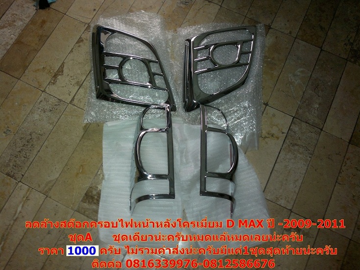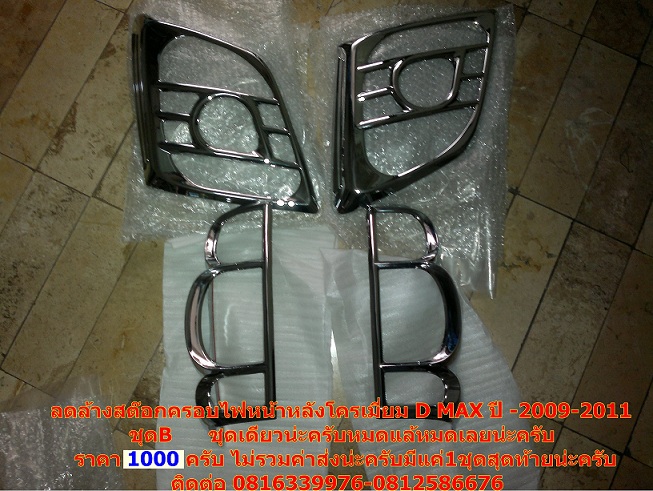 ลดล้างสต๊อกครอบไฟหน้าหลังโครเมี่ยม D MAX ปี -2009-2011 ชุดเดียวน่ะครับหมดแล้หมดเลยน่ะครับ ชุด A และ B ราคา 1000 ครับ ไม่รวมค่าส่งน่ะครับมีแค่1ชุดสุดท้ายน่ะครับ ติดต่อ 0816339976-0812586676
