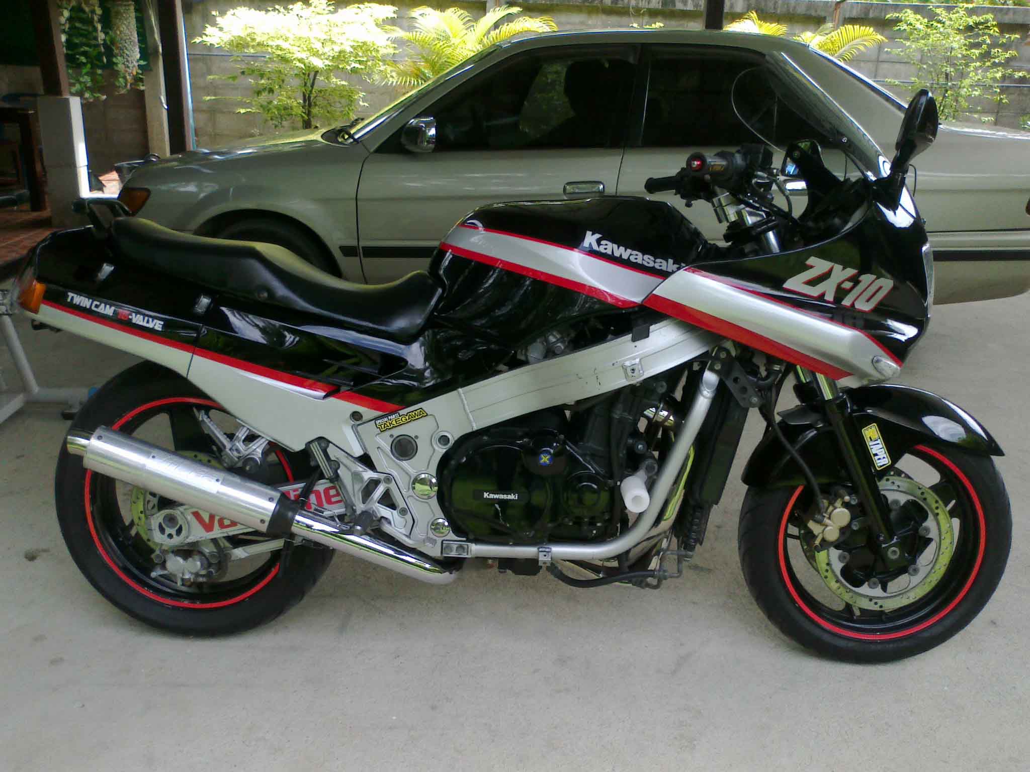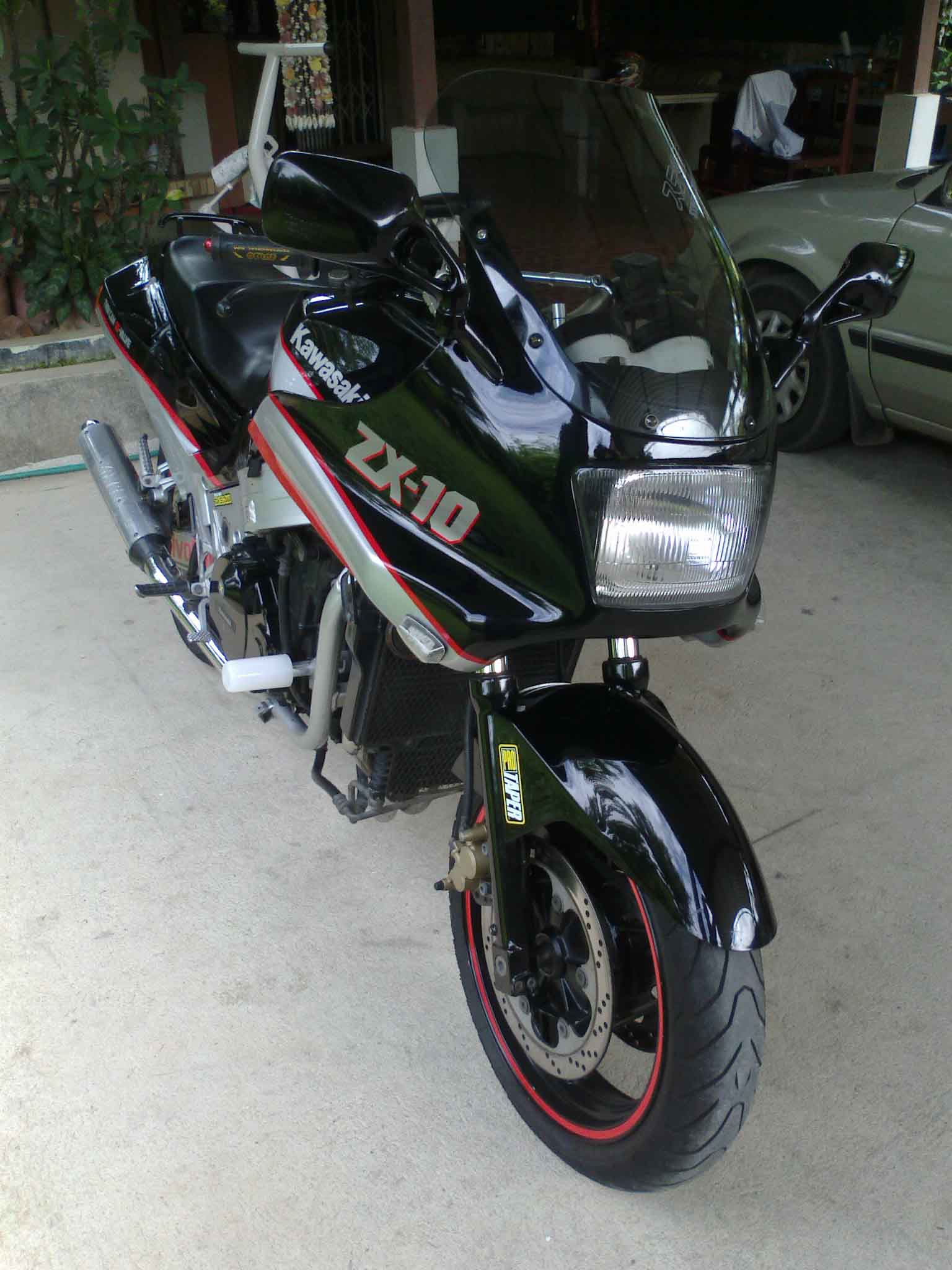 kawasaki ninja ZX 10 ปี 89 สภาพสวย เครื่องยนต์ดีเยี่ยม ไม่เคยเปิด หม้อน้ำกับออยคูลเลอร์ครีบสวยๆไม่มีล้ม มาพร้อมกับท่อแต่งสแตนเลสทั้งเส้นของ vance&hines อเมริกา เสียงโหดๆ ตุ๊กตาแฮนด์แต่ง แฮนด์บาร์แต่ง ยางหน้า-หลัง ใหม่ ของ Pirelli angel หน้า 120/17 หลัง 160/18 นิ่ม เหนียว หนึบ แบตใหม่ Yausa โซ่โอริง D.I.D สีทอง สเตอร์เต็มๆ สภาพสี 85% ยังเงาอยู่ ทรงสปอร์ตทัวริ่ง ขี่ยาวๆ ไม่ปวดหลัง รับประกันเครื่องยนต์ครับดีจริงๆ แค่ค่าท่อแต่ง+ค่ายาง ก็หลายหมื่นแล้วครับ อินวอยครบครับ ถึงปีรถจะเก่า แต่เครื่องและสภาพยังเก๋าอยู่ครับ มาลองดูได้ ของดีจริงแรงจริงเทคนิคไม่ต้อง ตอนนี้ติดสติ๊กเกอร์สะท้อนแสงที่ล้อ กันล้มข้างเครื่อง และเคฟล่าที่ฝาถังนำ้มันแล้วครับ สวยๆเลยครับ+แตรแต่ง 1 คู่ เสียงดังมากๆ ( ปล.แรงจริงๆครับเกิน 240 แน่นอน สมกับเป็นรถในตำนาน ) ใครที่อยากขยับ cc.หรือหารถดีๆไว้ใช้ขับออกทริปรับรองครับคุ้ม ขี่สบายไม่ปวดหลัง สมบูรณ์จริงๆครับคันนี้ สนใจโทร 086-6258864 ราคาต่อรองได้ครับ **********มีใบอินวอย+สำเนาทะเบียนให้ด้วยนะครับ********** Model: Kawasaki ZX-10 Year: 1989 Category: Sport touring Rating: 69.5 out of 100. Show full rating and compare with other bikes Engine and transmission Displacement: 997.00 ccm (60.84 cubic inches) Engine type: In-line four, four-stroke Power: 137.00 HP (100.0 kW)) @ 10000 RPM Compression: 11.0:1 Bore x stroke: 74.0 x 58.0 mm (2.9 x 2.3 inches) Valves per cylinder: 4 Fuel control: DOHC Cooling system: Liquid Gearbox: 6-speed Transmission type, final drive: Chain Chassis, suspension, brakes and wheels Front tyre dimensions: 120/70-17 Rear tyre dimensions: 160/60-18 Front brakes: Dual disc Rear brakes: Single disc Physical measures and capacities Weight incl. oil, gas, etc: 261.0 kg (575.4 pounds) Fuel capacity: 22.00 litres (5.81 gallons)