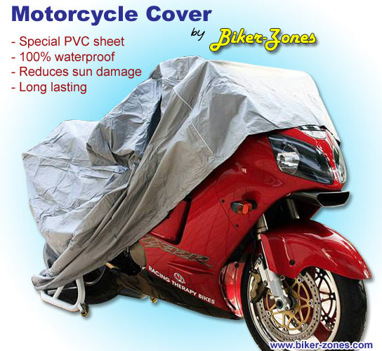 จำหน่ายผ้าคลุมรถมอเตอร์ไซด์ : กันน้ำ 100% กัน UV กันแดด ฝน ฝุ่นละออง มูลนก และยางไม้ ไม่แห้งกรอบ และไม่ติดสีรถ มียางรัดหัวและท้ายกันลมพัด มีผ้า 2 แบบ คือผ้า PVC และผ้า Silver Coat กันน้ำ 100% ทั้ง 2 แบบ มีให้เลือกหลายขนาด ส่งสินค้าทางพัสดุไปรษณีย์/เก็บเงินปลายทาง (พกง.) พร้อมรับประกันสินค้า ไม่พอใจยินดีคืนเงิน (ภายใน 7 วัน) ---------------------------------------------------------------------------------------------------------- วิธีสั่งซื้อ (เลือกวิธีใดวิธีหนึ่ง) : 1. ทางเว็บไซต์ : http://www.biker-zones.com