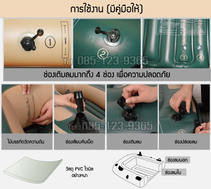 !*!*! ไทยช่วยไทย !! เรือพาย, เรือยาง, เรือยางพาย ขนาด 2,3,4 ที่นั่ง เรือคุณภาพดี -แข็งแรง- เรือที่ต่างประเทศใช้ตกปลาในบึงหรือทะเล [ไม่ใช่เรือเด็กเล่น] อุปกรณ์ครบชุด พาย 1 คู่ + สูบมือ + กระเป๋าใหญ่ใช้เก็บเรือ + ชุดซ่อมฉุกเฉิน แยกช่องลม 2 ส่วน !*!*!*!