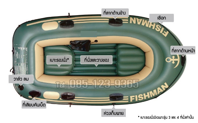 !*!*! ราคาไทยช่วยไทย !! เรือพาย, เรือยาง, เรือยางพาย ขนาด 3 ที่นั่ง เรือคุณภาพดี -แข็งแรง- เรือที่ต่างประเทศใช้ตกปลาในบึงหรือทะเล [ไม่ใช่เรือเด็กเล่น] อุปกรณ์ครบชุด พาย 1 คู่ + สูบมือ + กระเป๋าใหญ่ใช้เก็บเรือ + ชุดซ่อมฉุกเฉิน แยกช่องลม 2 ส่วน !*!*!*!