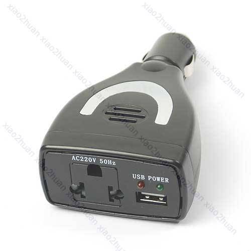เป็นเครื่องแปลงไฟ DC 12v เป็น 220v ในรูปแบบเสียบที่จุดบุหรี่รถยนต์ ขนาด 75วัตต์ ใช้งานง่ายและสดวก เหมาะสำหรับติดรถยนต์ไว้ใช้งาน กรณีท่องเที่ยวหรือต้องการใช้ไฟฟ้าฉุกเฉิน Description: 100% brand new and high quality Car 12V DC to AC power inverter with 5V USB output Easy to use, plug and play LED indicator Audio alarm warns of low battery level prior to auto shut down Input voltage: DC 12V Output voltage :AC 220V USB output: DC 5V Output power:75W Suitable for Laptop, battery charger, digital camera, cd player, electric shaver etc