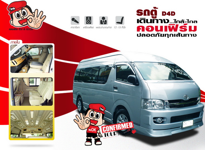บริการให้เช่ารถตู้ ดีเซล - เอ็นจีวีNGV Toyota Commuter D4D รุ่นใหม่ ตกแต่งสวยทั้งภายนอกและภายใน เบาะที่นั่งขนาดใหญ่VIP 10 ที่นั่ง และ 13 ที่นั่ง สะดวกสบายในการนั่งและปรับเอนนอน พร้อมเครื่องเล่น DVD, CD, MP3 ดูหนัง ฟังเพลง คาราโอเกะ