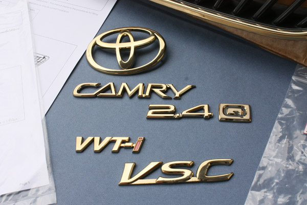 ชุดแต่งTOYOTA CAMRY2.4Q สีทองของแท้ มีกระจังหน้า เครื่องหมาย(โลโก้)หน้า-หลัง และตัวอักษรครบทั้งหมดทุกตัว สภาพสวยเหมือนใหม่(เก็บใส่กล่องเดิมไว้นาน) ขายถูก 5000 บาท