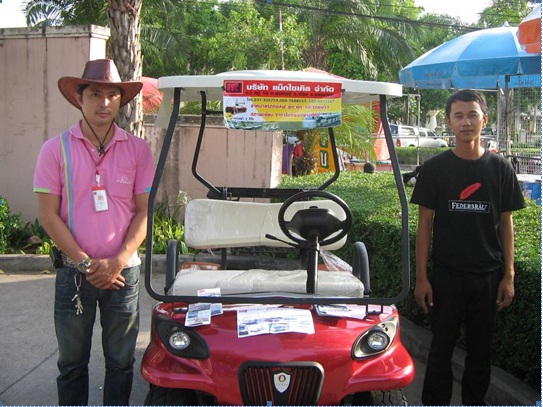 บริษัท แม็กไซเคิล จำกัด ทะเบียนการค้าเลขที่ 0125546010168 เลขประจำตัวผู้เสียภาษีอากรเลขที่ 3031101869 ดำเนินธุรกิจจำหน่ายรถกอล์ฟ, ตุ๊ก ตุ๊ก รถชมวิวและรถโมบาย ในสภาพใหม่และพร้อมใช้พร้อมทั้งบริการบำรุงรักษาและรับซ่อมทั้งในและนอกสถานที่ มีความยินดีเป็นอย่างยิ่งที่จะขอเสนอโบรชัวร์ตัวอย่างสินค้าตามที่แนบมานี้ หากท่านต้องการสอบถามข้อมูลเพิ่มเติม กรุณาติดต่อ คุณ หัสรินทร์ เล้าประเสริฐ
