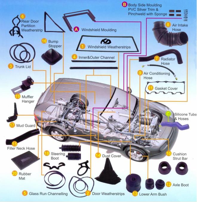 ขายส่ง ชิ้นส่วนยางต่างๆ ในรถยนต์ เช่น ยางขอบกระจกบังลม ยางขอบประตูหน้าต่าง ท่อยาง ท่อซีลีโคน ของรถยนต์ทุกยี่ห้อ ทุกชนิด จากโรงงานโดยตรง และรับผลิตชิ้นงานตามแบบที่ต้องการได้ สนใจติดต่อ NEW AUTOPARTS RUBBER (NAR) 085-113 7116 , 086-385 0734 คุณตฤณ