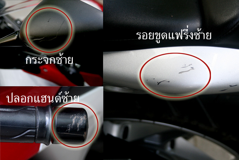 ขาย CBR250i ตัว ABS ครับ ขายดาวน์ 80000 จะเปลี่ยนแนว (รายละเอียดดังนี้) ออกรถเมื่อ กุมภาพันธ์ 2554 เลขตัวรถ 0000456 ผมดาวน์มาในราคา 90,000 บาท (ออกที่โอ๋เอ๋ มอเตอร์) ผ่อนทั้งหมด 18 งวด งวดละ 3,700 บาท ผมจ่ายไป 7 งวดแล้ว (รวมเป็นเงิน 7 x3,700 = 25,900) คงเหลืออีก 11 งวด โดยในการเปลี่ยนสัญญาผู้อ่อน ต้องจ่ายค่างวดของเดือนที่ทำสัญญาและล่วงหน้า 1 เดือน หมายความว่า ผมจะจ่ายงวดที่ 8 (เดือนกันยายน 54) และงวดที่ 9 ให้ครับ เป็นเงิน 7,400และผมจะออกค่าเปลี่ยนสัญญา 1000 บาทให้ด้วยครับ สรุปดังนั้นคุณก็จะจ่ายต่อทั้งหมดอีก 9 งวด เป็นเงิน 33,300 บาท พร้อมกัน แถมของแต่งนิดหน่อย ท่อสูตรพระราม 2 Bike 5,900 (เสียงแน่น ได้ปลาย) เกียร์โยง 5,500 กันถัง Keiti 750 ไฟฉุกเฉิน + ไฟหรีในไฟเลี้ยว หน้า-หลัง 500 ไฟ LED สีขาว ใท้อง(ด้านหลัง)1200 แตรลมไฟฟ้า 1,200 รวมของแต่งประมาณ 14,000+ ส่วนของเดิมอยู่ครบทุกอย่างครับ ท่อเดิมนี่ใช่ได้อาทิตย์เดียวก็เปลี่ยนใส่ท่อสูตรเลย สภาพกิ๊กๆ รถ 7 เดือนวิ่งไป 8,xxxโล รถใช้งานทุกวันไม่มีปัญหาแต่อย่างใด เปลี่ยนน้ำมันมาแล้วเครื่อง 3 ครั้ง ครั้งแรกเปลี่ยนที่ศูนย์ Honda 2 ครั้งที่เหลือเปลี่ยนเองใช้ PTT ChallengerSynthetic ตลอด รถมีตำหนิ 3 จุดคือเป็นรอยขูดที่ กระจกซ้าย ปลายตุ้มแฮนด์ซ้าย แฟริ่งซ้าย สาเหตุ จอดรถแล้วกางขาตั้งไม่สุด ขาตั้งเลยพับ รถล้มไปขูดกำแพง (รอยขูดดูตามรูป) ที่เหลือก็มีรอยขนแมวบ้างตามการใช้งาน สภาพรถ 95% นัดดูรถได้ทุกวัน ยังไงโทรมานัดก่อนก็ดีนะครับ ถ้าต้องการรายละเอียดเพิ่มเติมโทร 081-1429016 หรืออีกเบอร์ (เบอร์แฟน) 087-6070032 ถ้าไม่รับต้องขออภัยเพราะทำงานอยู่ครับ หรือติดต่อทางเมลล์
