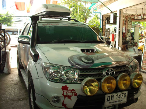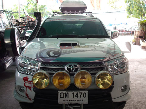 ด้านหน้าของรถ ทำการสร้างชุดการ์ดรองได้กันชนหน้างานแฮนด์เมด พร้อมเป็นรางยึดชุดไฟ สปอตไลด์ สำหรับการขับขี่ในทางเปลี่ยว จะได้มีความสว่างัเจนขึ้น