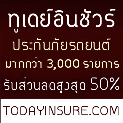 ทูเดย์อินชัวร์ เรามี ประกันภัยรถยนต์ 2 พลัส มีให้ท่านเลือกมากกว่า 400 รายการหลากหลายความคุ้มครอง ราคาเริ่มต้น 6,170.00 บาท ซ่อมทั้ง 2 ฝ่าย* มีประกันรถหาย-ไฟไหม้ (* เมื่อเกิดเหตุกับยานพาหนะทางบกเท่านั้น ดูรายตามละเอียดความคุ้มครอง) ประกันภัยรถยนต์ 3 พลัส ให้ท่านเลือกมากกว่า 500 แพ็กเกจหลากหลายความคุ้มครอง ราคาเริ่มต้นเพียง 5,150.00 บาท ซ่อมทั้ง 2 ฝ่าย ** (** เมื่อเกิดเหตุกับยานพาหนะทางบกเท่านั้น ดูรายตามละเอียดความคุ้มครอง) ทูเดย์อินชัวร์ เรายังมี ประกันภัยรถยนต์ชั้น1 และประกันอื่นๆ รวมมากกว่า 3,000 รายการให้คุณเปรียบเทียบ เช่น วิริยะ กรุงเทพ เมืองไทย MSIG ศรีเมือง อาคเนย์ สินมั่นคง และบริษัทประกันภัยรถยนต์ชั้นนำอื่นๆอีกกว่า 20 บริษัท ที่นี่เรายึดถือบัญญัติ 3 ประการแห่งความปลอดภัย - ซื้อประกันภัยกับเราปลอดภัยกว่าเพราะ ชำระเงินโดยตรงกับบริษัทประกันภัย
