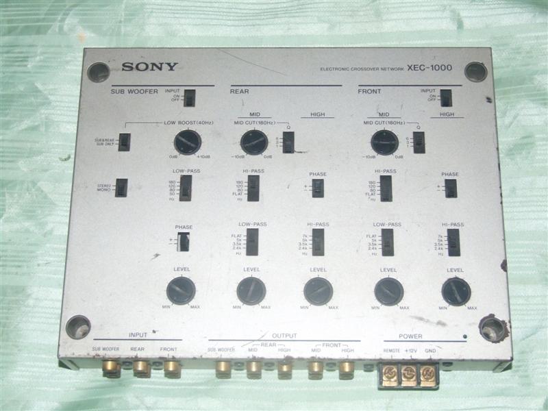 The XEC-1000S is Sony's electronic crossover masterpiece. It can control up to five amplifiers and bring the sounds in your car audio system together in a symphonic convergence. The 3-way crossover network is designed to control a subwoofer amp plus two midrange amps and two tweeter amps. You get three pairs of inputs and five pairs of outputs. Each pair of outputs has a separate level control. The subwoofer output includes a phase switch, a mono/stereo switch, and an adjustable bass boost at 40 Hz. Low-pass crossover points for subwoofer are 50/80/120/180 Hz. Bandpass frequencies front and rear are between 80/120/180Hz and 2.4k/3.5k/5kHz. There is also an adjustable midrange cut at 180 Hz to help you flatten unwanted peaks in the response curve. High-pass frequencies front and rear are 2.4k/3.5k/5k/7kHz, and you get tweeter phase switches for front and rear.