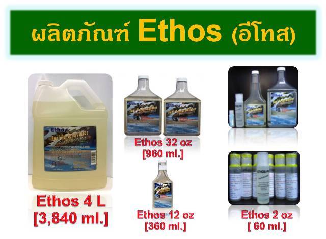 หักค่า อีโทส 180 บาท ( 480 - 180 ) ยังมีกำไร กลับมาอีก = 300 บาท 1 oz [ออนซ์] = 30 ml/cc [มิลิลิตร/ซีซี] *Ethos ผลิตจาก น้ำมันแร่ธรรมชาติ ไม่ใช่สารปิโตรเลียม * ***ไม่เป็นพิษ หรือ อันตรายใดๆ ทั้งกับมนุษย์ และ สิ่งแวดล้อม*** อีโทส (Ethos) ได้รับการทดสอบ และ ยืนยัน โดยสถาบัน EPA แล้วว่า