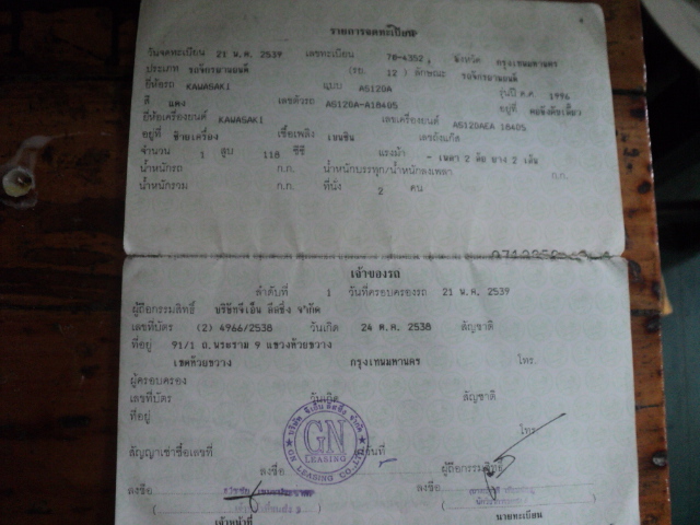 รถไม่ได้ใช้นาน จอดไว้เฉยๆ เคยเอามาสตาร์ทล่าสุดเมื่อเดือนที่แล้วยังติดอยู่ ตอนนี้น้ำมันหมดเลยไม่รู้ว่าจะสตาร์ทติดหรือเปล่าไม่มีเวลาไปเติม และอีกอย่างรถเคยโดนแท็กชี่เฉี่ยวมา หน้ากากหน้าแตก แต่เอาลวดขึงให้แล้ว ไฟหน้ายังติดอยู่ แต่โช๊คหน้าคดนิดหน่อย และยางหน้าแตกด้วย แต่พอขี่ได้ ขายตามสภาพนะครับ มีทะเบียนเล่มครบ แต่ขาดต่อ 1 เดือน ถ้าจะมาเอาต้องเอารถไปปะยางเอาเองนะครับ ขายถูกสุดแล้ว