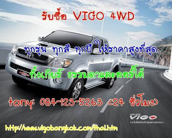 รับซื้อรถยนต์มือสองใช้งานไม่เกิน 6 ปี เฉพาะ TOYOTA VIGO 4WD ทุกรุ่น ทุกสี ทุกปี เพื่อส่งออกต่างประเทศให้ราคาสูงที่สุดในประเทศไทย ติดต่อ tony : 0858041415 (24ชั่วโมง)