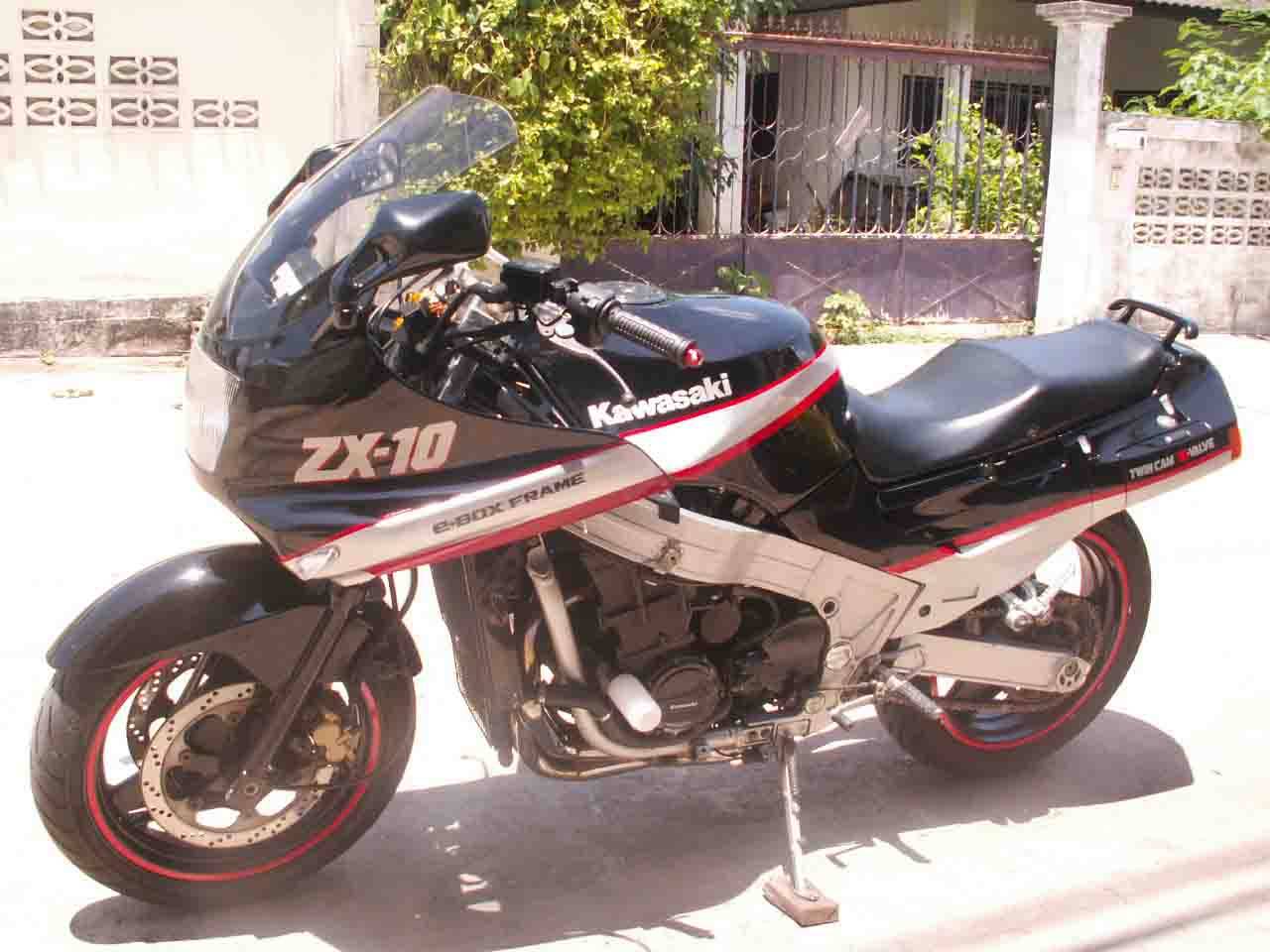 kawasaki ninja ZX 10 ปี 88 สภาพสวย เครื่องยนต์ดีเยี่ยม ไม่เคยเปิด หม้อน้ำกับออยคูลเลอร์ครีบสวยๆไม่มีล้ม มาพร้อมกับท่อแต่งสแตนเลสทั้งเส้นของ vance&hines อเมริกา เสียงโหดๆ ตุ๊กตาแฮนด์แต่ง แฮนด์บาร์แต่ง ยางหน้า-หลัง ใหม่ ของ Pirelli angel หน้า 120/17 หลัง 160/18 นิ่ม เหนียว หนึบ แบตใหม่ Yausa โซ่โอริง D.I.D สีทอง สเตอร์เต็มๆ สภาพสี 85% ยังเงาอยู่ ทรงสปอร์ตทัวริ่ง ขี่ยาวๆ ไม่ปวดหลัง รับประกันเครื่องยนต์ครับดีจริงๆ อินวอยครบครับ แค่ค่าท่อแต่ง+ค่ายาง ก็หลายหมื่นแล้วครับ อินวอยครบครับ ถึงปีรถจะเก่า แต่เครื่องและสภาพยังเก๋าอยู่ครับ มาลองดูได้ ของดีจริงแรงจริงเทคนิคไม่ต้อง ตอนนี้ติดสติ๊กเกอร์สะท้อนแสงที่ล้อ กันล้มข้างเครื่อง และเคฟล่าที่ฝาถังนำ้มันแล้วครับ สวยๆเลยครับ