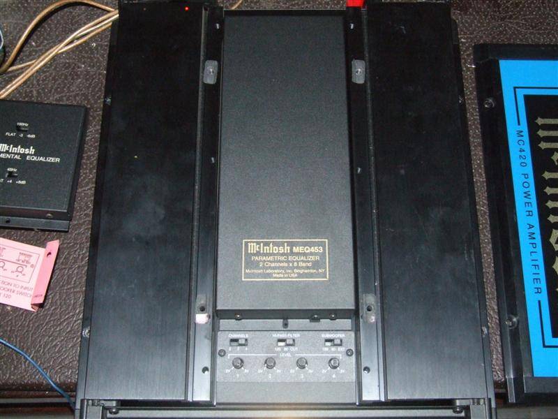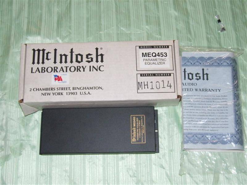 MEQ453 Parametric equalizer. 2 channel X 8 bands/channel. Provides acoustic control within the automotive environment. Microprocessor controlled analog filters. For increased reliability, no mechanical switches or controls are used. Ultra low distortion and high dynamic range circuitry. Adjustable gain, frequency and Q. Installs inside McIntosh amplifiers, equalizer power supply or electronic crossovers. Sold from 1996-1997. Last retail price $600