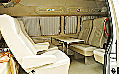 รถตู้วีไอพี8ที่นั่ง เบาะหนังเบนซ์สีครีมสะอาดตา หลังคนขับสองที่นั่ง เบาะหันหน้าเข้าหากันได้ มีโต๊ะประชุมตรงกลาง วางของได้ มีที่แขวนเสื้อด้านหลังรถ มีจานดาวเทียม เครื่องเสียง คาราโอเกะ mp3 สนใจติดต่อ พี่เปิ้ล 085-8635844 www.natrujastudio.com