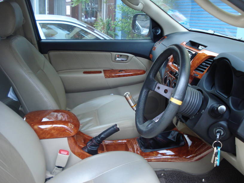 - ตกแต่งภายในแบบ exclusive ลายไม้ทั้งคัน พร้อมมือจับโครเมี่ยม และตกแต่งโทนสีใหม่แบบ Fortuner ตัวท็อป