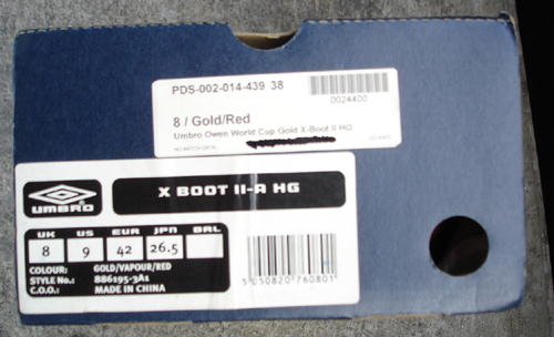 ขาย UMBRO X-BOOT 2 ที่ลิ้นมีปักชื่อ Owen หนังจิงโจ้แท้ เบอร์ เบอร์ 8 uk / 265 jp / 9 us ของใหม่ ของแท้ 100 %