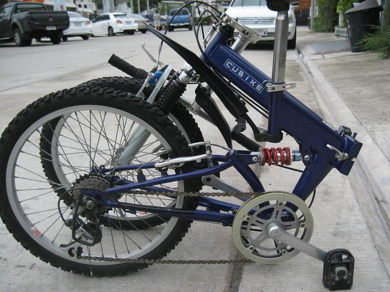 ขายจักรยานพับได้มือสองจากญี่ปุ่น CUBIKE สีน้ำเงินล้ออลูมิเนียม 20 นิ้วโช๊คหน้า-หลัง เกียร์ Shimano 6 speed เบรคแบบเสือภูเขา วีเบรค ราคา 4,300 บาท สนใจติดต่อคุณอ๊อบ 0814833659
