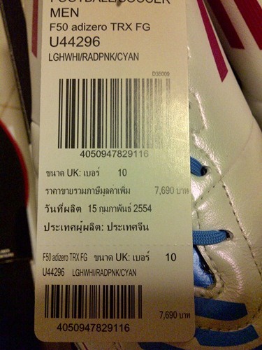 ขาย Adidas F50 Adizero สีขาว-ฟ้า sz 10.5us ของใหม่ ตัวหนังแท้ ยกกล่องครับ (ไซส์นี้หายากครับ) ราคา 3,700 บาท สนใจติดต่อ โอ o89 5114758 ดูของได้แถวแจ้งวัฒนะ หรือ ลาดพร้าว