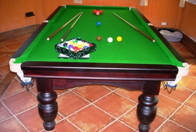 Pool Table 8'6" (260cm) x 4'6" (142cm) can be used for Snooker inc 3 cues, rests and two sets of balls for snooker and pool very beautiful table in nearly new condition 8'6" (260cm) x 4'6" (142cm) Cost 59,000 THB sell for 42,000 THB