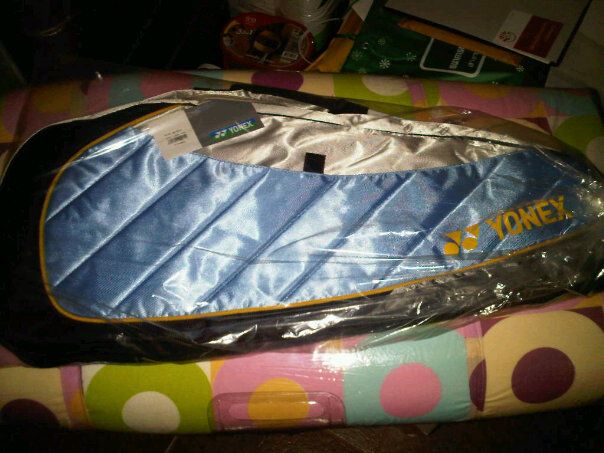 ขายกระเป๋าใส่ไม้แบดยี่ห้อ YONEX รุ่น 2010 สีฟ้า/เหลือง ยังไม่ได้ใช้งาน ของใหม่ 100% ป้ายราคายังไม่ได้แกะออกเลยครับ ขาย 800 บาทครับ สนใจติดต่อโทร 084-1522525 อยู่แถวซีคอน