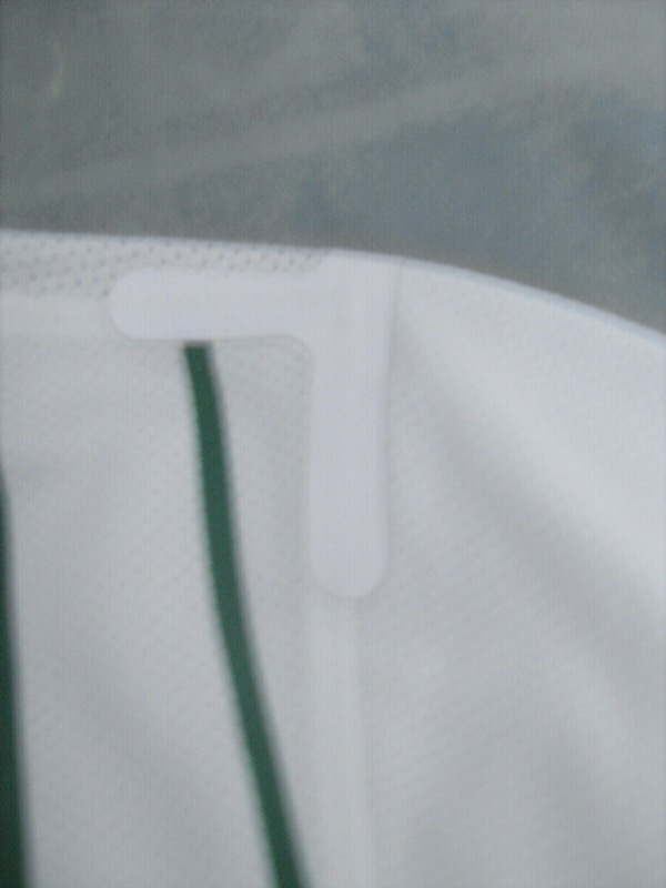 โลโก้ ตราไนกี้ และโลโก้สโมสรเป็นเฟล็ก ข้างๆตัวเสื้อมีรูระบาย ตรงหัวไกล่มีแถบยางสีขาวๆ ต่างจากทั่วไป