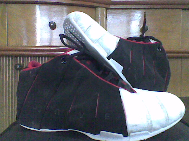 ขายConverse Wade1 Play Off สีขาว-ดำ-แดง เบอร์9/43(เท่ากับ9.5/43.5ของNikeนะครับคู่นี้น้องชายผมซื้ออีเบย์มาพร้อมกับคู่ขาว-แดงของผมครับสภาพดีครับพื้นเต็ม)