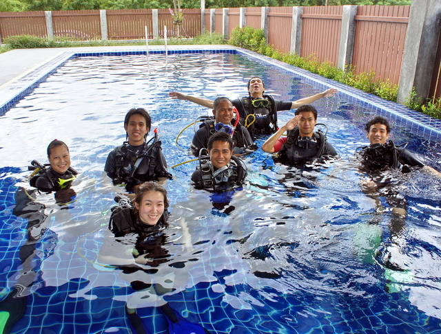 - การคำนวณเครื่องมือวัดประกอบการ ดำน้ำ และการวางแผนความลึกในการดำ -- 2. ภาคปฏิบัติในสระว่ายน้ำ (ในกรุงเทพฯ-ไม่จำกัดจำนวนครั้งที่ลงสระ) เช่น - ความรู้ในการใช้เครื่องช่วยหายใจใต้น้ำแบบ วงจรเปิด (SCUBA)