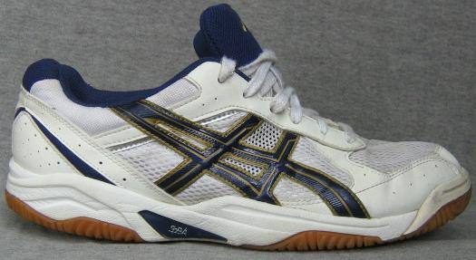 Asics พื้นยางดิบขาวน้ำเงินคาดแถบน้ำเงินขลิบทองเบอร์ 42.5