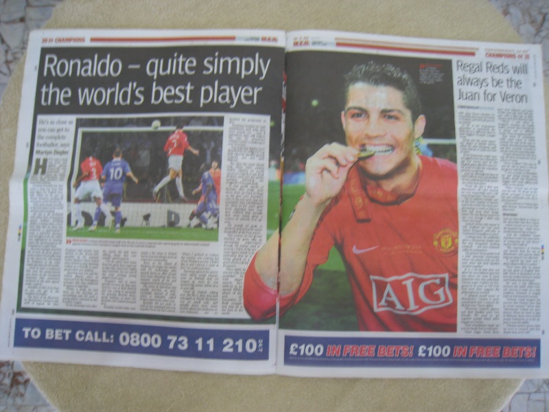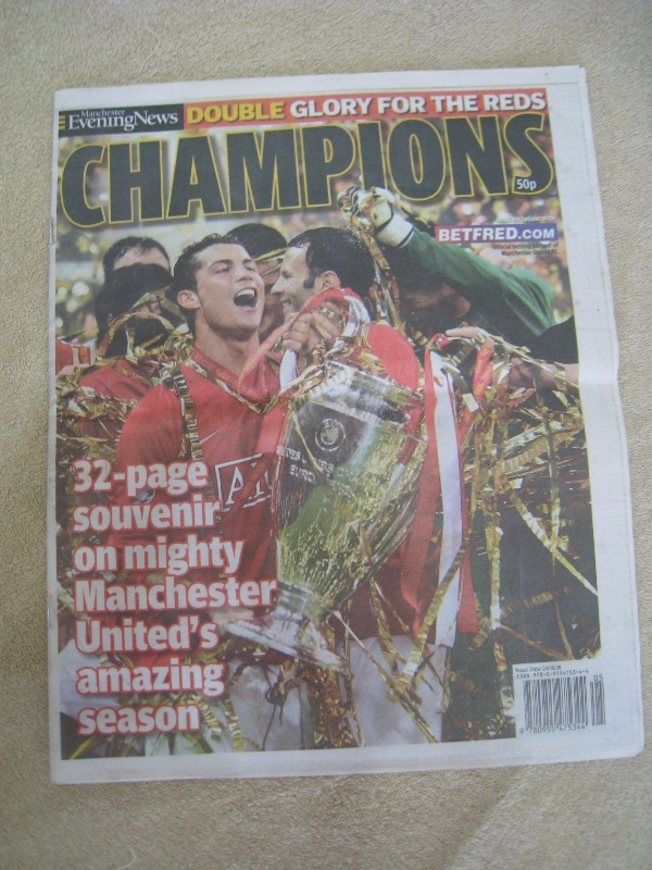หนังสือพิมพ์ Manchester Evening News ฉบับพิเศษในโอกาสฉลองการเป็นดับเบิ้ลแชมป์ ในฤดูกาลอันสุดแสนจะน่าตื่นเต้น ฤดูกาล 2007/2008 ทั้งเล่นเป็นภาพสี และประกอบด้วยภาพและบรรยากาศการฉลองแชมป์ ที่เป็นภาพเหตุการณ์ประวัติศาสตร์ที่โลกต้องจารึก ซึ่งอาจจะหาดูได้ แต่ก็ไม่คลาสสิคเท่ากับภาพจากหนังสือพิมพ์เก่าอีกแล้ว ซึ่งรวมรวมภาพสุดแสนประทับใจ ซึ่งหากคุณเป็นแฟนแมนยูตัวจริง ต้องห้ามพลาดภาพแห่งความเหล่านี้