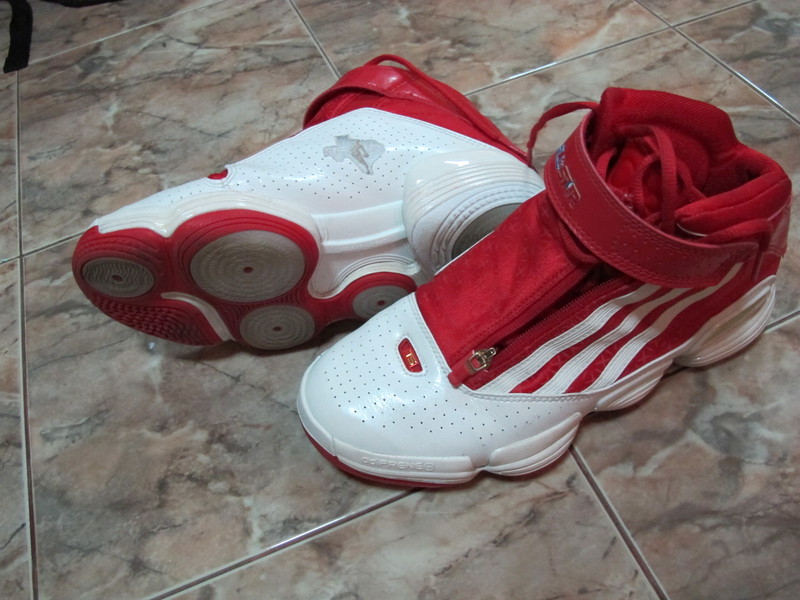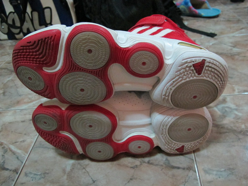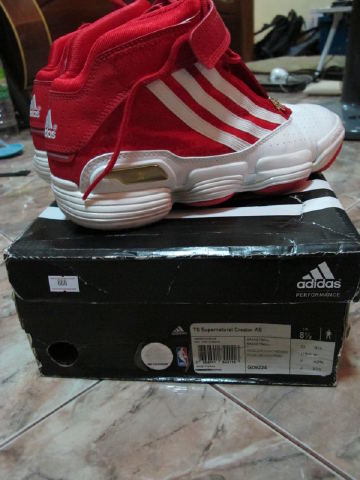 สีแดงแจ๊ดๆ ของผมใช้เองครับ ซื้อเมื่อวันที่ 21 ก.พ. 2554 (เช็คใบเสร็จได้เก็บไว้อยู่)จาก Shop Adidas สภาพตีไป 95% แล้วกันตามการใช้งานนิดหน่อย ใส่แค่เดือนละ 1 - 2 ครั้ง พื้นเต็มๆ เล่นพื้นปาเก้ในโรงยิมตลอด ไม่มีโดนพื้นปูนครับอย่างมากก็พื้นหินอ่อนและพื้นปูกระเบื้องบริเวณโรงยิม ขายที่ 2000 ถ้วนยกกล่อง + EMS ฟรี ไม่ลดแล้วนะครับ