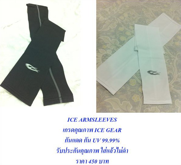ใหม่ ล่าสุดปลอกแขนกันร้อน รุ่น ICE Armsleeves ป้องกันความร้อน และ UV ได้ 99% (เนื้อผ้าเบาและบาง ชนิดเดียวกับเสื้อรุ่น ICE) รับประกันความบางและกันร้อน ราคา 450บ (รวมส่ง)
