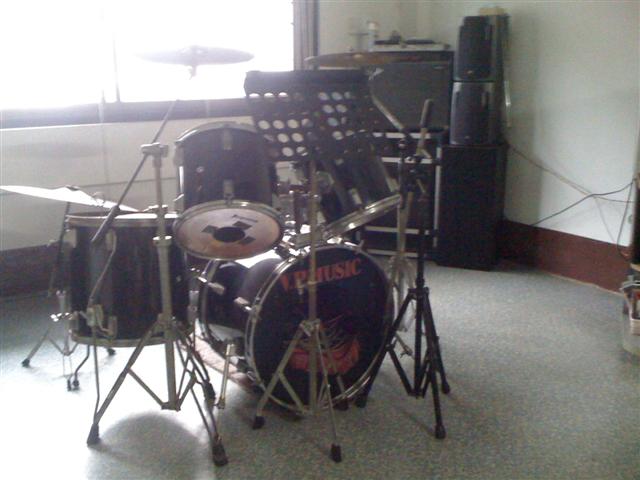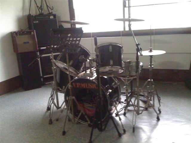แอมป์กีตาร์ fender princetion chorus พร้อมเอฟเฟค korg ax1000 แอมป์กีตาร์ stone น่าจะ 50w ไม่แน่ใจครับ เบส squier jazz พร้อมแอมป์ vip ดอกสิบสองนิ้ว พร้อมเอฟเฟค zoom 506II กลองชุด แต่ผมไม่ทราบยี่ห้อนะครับ ผมเปลี่ยนหนังกลองไปแล้วครับ รับรองเสียงดีกว่าห้องซ้อมแน่นอน สแตนอ่านโน็ต ขาตั้งไมล์