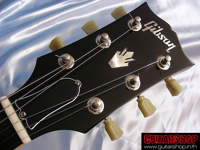 Mother-of-pearl Gibson logo and holly headstock inlay