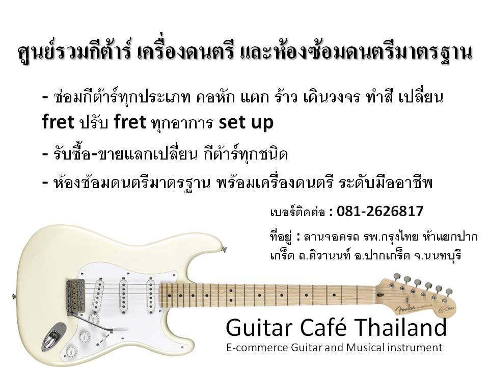 Guitar Cafe' Thailand รับ ซ่อมกีต้าร์ ทุกประเภท คอหัก คอแตก คอร้าว เปลี่ยน Fret เดินวงจร set up กีต้าร์ เปลี่ยน Nut & Saddle เป็นกระดูกหน้าแข้งวัว และทุกส่วนที่เป็นปัญหาของกีต้าร์