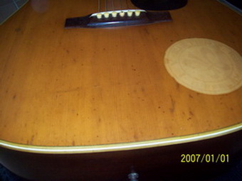 กีต้าร์โปร่ง YASUMA CUSTOM HAND MADE MADE IN JAPAN ด้านหน้าที่เป็นลอย คือดึง sticker ออก ก็เป็นลอย แต่ไม่มีไม้แตกนะครับ ราคา 5000 สนใจ 0815857055