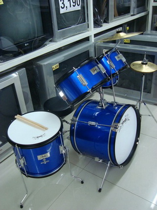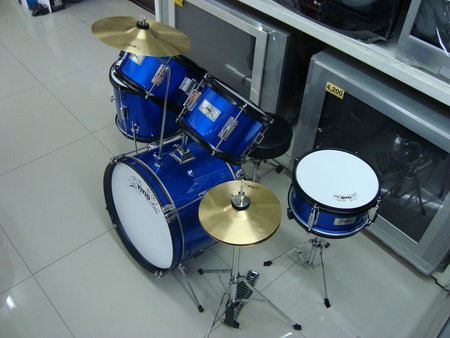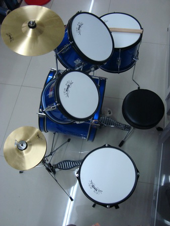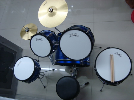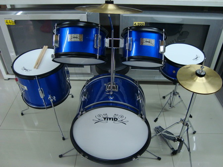 กลองชุด ตัวเล็ก ViVid สีน้ำเงิน ของใหม่ ครบชุด พร้อมเก้าอี้นั่ง ไม้ เล่นได้เลย ขายถูกมาก