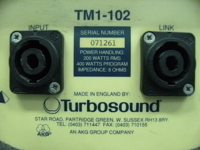 ขายตู้ลำโพง 12 นิ้ว turbosound TM1-102 made in England จำนวน 2 คู่