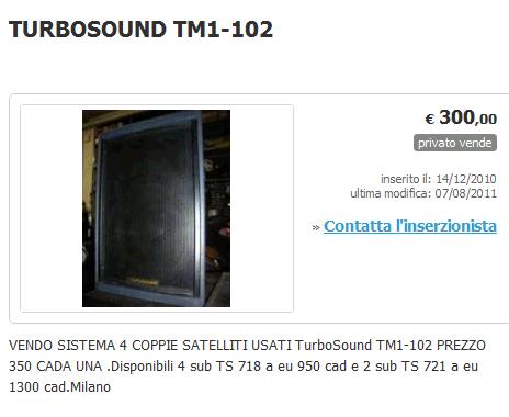 ขายตู้ลำโพงPA 12 นิ้ว turbosound TM1-102 made in England 400 wats RMS จำนวน 2 คู่ คู่ละ 20,000 บาท เสียงดีมาก สภาพดี มีตู้หนึ่งที่เปลี่ยนเป็นดอก RCF ของอิตาลี่ เสียงไม่ต่างกันเลย สีเดิมเป็นสีน้ำเงินเข้ม มันไม่เข้ากับชุดลำโพง เลยพ่นสีใหม่ีเป็นสีดำระเบิด ซื้อต่อเค้ามาได้ประมาณ 4 เดือน ไม่ค่อยได้ออกงาน ส่วนมากใ่ช้้เปิดเพลงฟังเล่น ๆ ที่จำเป็นต้องขายเพราะภรรยาคลอดลูก ต้องการใช้เงินครับ... รายละเอียดตามรูปภาพครับ...รุ่นนี้มีขายในเว็บต่างประเทศ มือสอง ตู้ละ 300 ยูโร โทรติดต่อฟังเสียงได้ครับ..ชื่อพิน มือถือ 0857045787