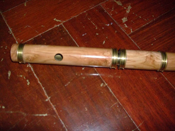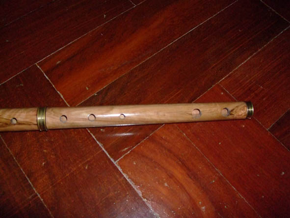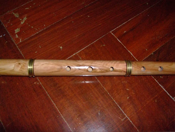 ขลุ่ยผิวทำจากไม้โคคัส โชว์ลายไม้สวยงาม ให้สำเนียงเสียงนุ่มแบบเซลติก ไฮแลนด์ แองโกล แซกซอน ข้อต่อไม้ค็อก หุ้มทองเหลือง ส่วนหัวข้อต่อเงินปรับแต่งเสียง ปรับมุมการเป่าได้ ความยาว 26 นิ้วคีย์D