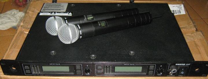 ขายไมค์ลอยSHURE รุ่น U4D-KK รีซีฟเวอร์แบบคู่ พร้อมไมค์ลอยหางหนู 1 คู่ ความถี่ย่าน 838-863Mhz สภาพยังสวย ตัวHandheldมีSM58 1ตัว และ BETA58 1ตัวครับ ขายที่ราคา 52,000 บาท ครับผม สนใจติดต่อ 08-1588-1599 AIS 08-4119-5999 TRUE ผมหมูนะครับ