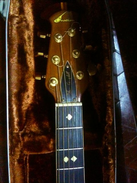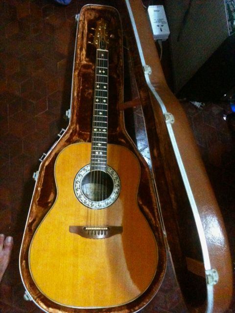 ขาย electro 'coustic Ovation 1167 หรือรุ่น sig ของศิลปินใหญ่ หัวใจ country Glen Campbell Made in USA ปี 79 เก็บไว้ในตู้มานาน Spec:Top: Solid Sitka Spruce AAA Fret Board: Ebony, Ivory Binding Fret Inlay: 15 Pearl Bridge: Walnut Pickup: Piezoelectric Nutwidth: 1 11/16" Machines: 24k Gold Plated