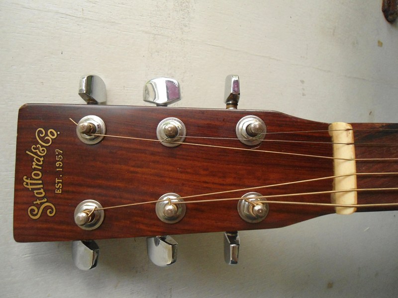 STAFFORD SF 500S SOLIDTOPทรง OM MADE IN JAPAN COPY ..MATIN เป็นงานที่ทำขึ้นโดยช่างตระกูล KUROSAWAซึ่งมีความชำนาญจาก SPAIN ซึ่ง โดยทั่วไปมักจะทำ CLASSIC GUITAR ตัวนื้เสียงออกแนว MARTIN ดีๆๆนี่เอง ครับ สภาพดีมาก มีรอยนิดหน่อย