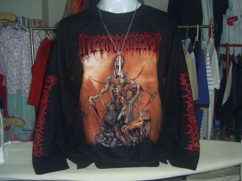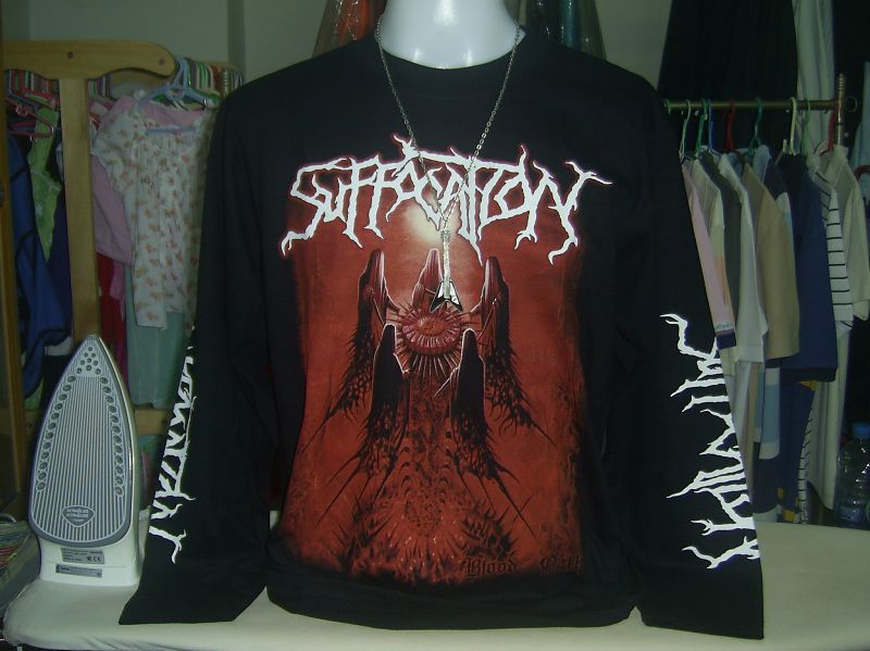 T-SHIRT BRUTAL DEATH สีดำแขนยาววง SUFFOCATION,VITAL REMAINS,DISGORE,DEVOURMENT,IMMOLATION,CANNIBAL CORPSE มีลายละตัวเดียวSIZE L ขายตัวละ 300 บาท