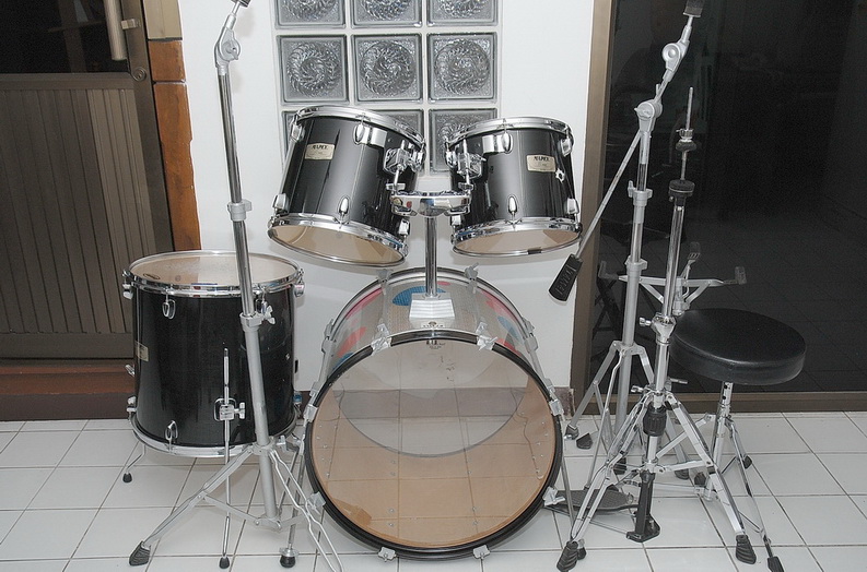 - กลองสีดำ ขนาดกลองทอม 12" 13" ระบบแขวน I.S.T. tom หนัง Remo Pinstripe floortom 16"